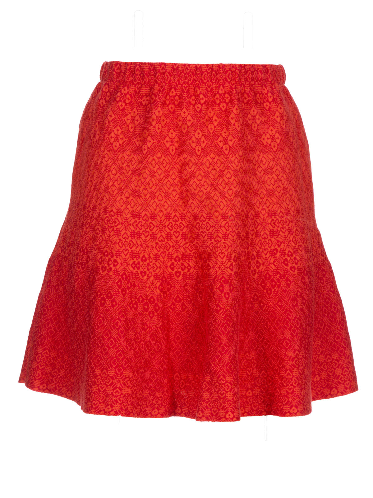 Dieser Rock vereint Komfort mit einem stilvollen Jacquardmuster. Der weiche Stoff aus 100% Baumwolle (Bio) sorgt für ein angenehmes Tragegefühl. Der ausgestellte Schnitt und der bequeme Gummibund machen ihn zum idealen Begleiter für Alltag und Freizeit.